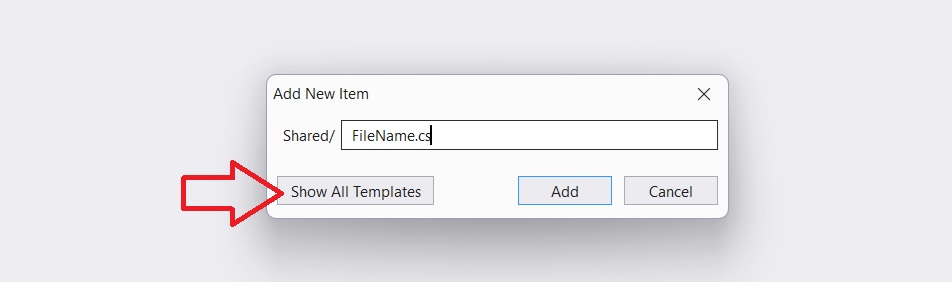 ابتدا روی فولدر Shared کلیک راست کرده و از گزینه Add گزینه New Item را انتخاب میکنیم.